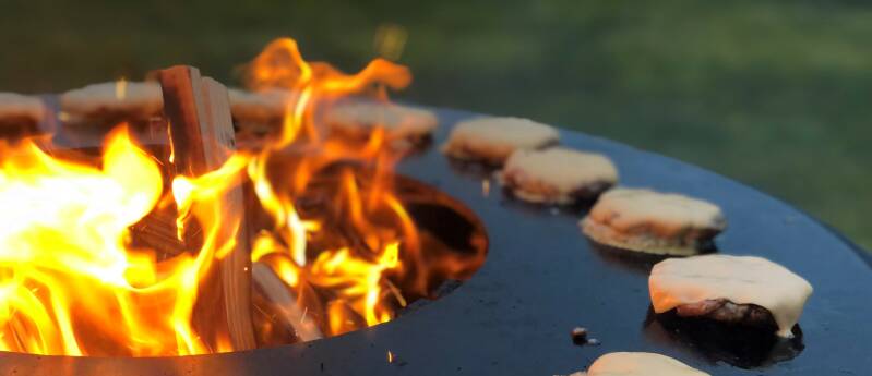 Maak het vuur aan zoals u gedaan heeft tijdens het inbrandings-proces: Stapel een aantal stukken hout op elkaar en leg aanmaakblokjes in de openingen, steek deze aan. Wanneer het hout goed vlam heeft gevat kunnen er meerdere houtblokken toegevoegd worden. Bouw met deze houtblokken een piramide vorm rondom het hout dat al in de vuurschaal ligt. Blijf hout aanvullen tot dat de bakplaat heet genoeg is om op te bakken. Klop het vuur in en verdeel het gloeiende hout over de bodem van de vuurschaal. Plaats na het inkloppen eventueel het grillrooster, maak de bakplaat as vrij en wrijf in met olie: de TC-FIREQUE is nu klaar voor gebruik. Door af en toe wat hout bij te voegen blijft de warmte behouden. Gaat het te hard? Voeg minder hout toe. Gaat het te zacht? Creëer een mooi vlammenspel en de TC-FIREQUE is binnen no-time weer warmer. De bakplaat heeft verschillende warmtezones; omdat er vanuit het midden warmte gecreëerd wordt, is de binnenring van de bakplaat warmer dan de buitenring. Er kunnen nog meer warmtezones gecreëerd worden door het hout juist naar één kant in de vuurschaal te verplaatsen.